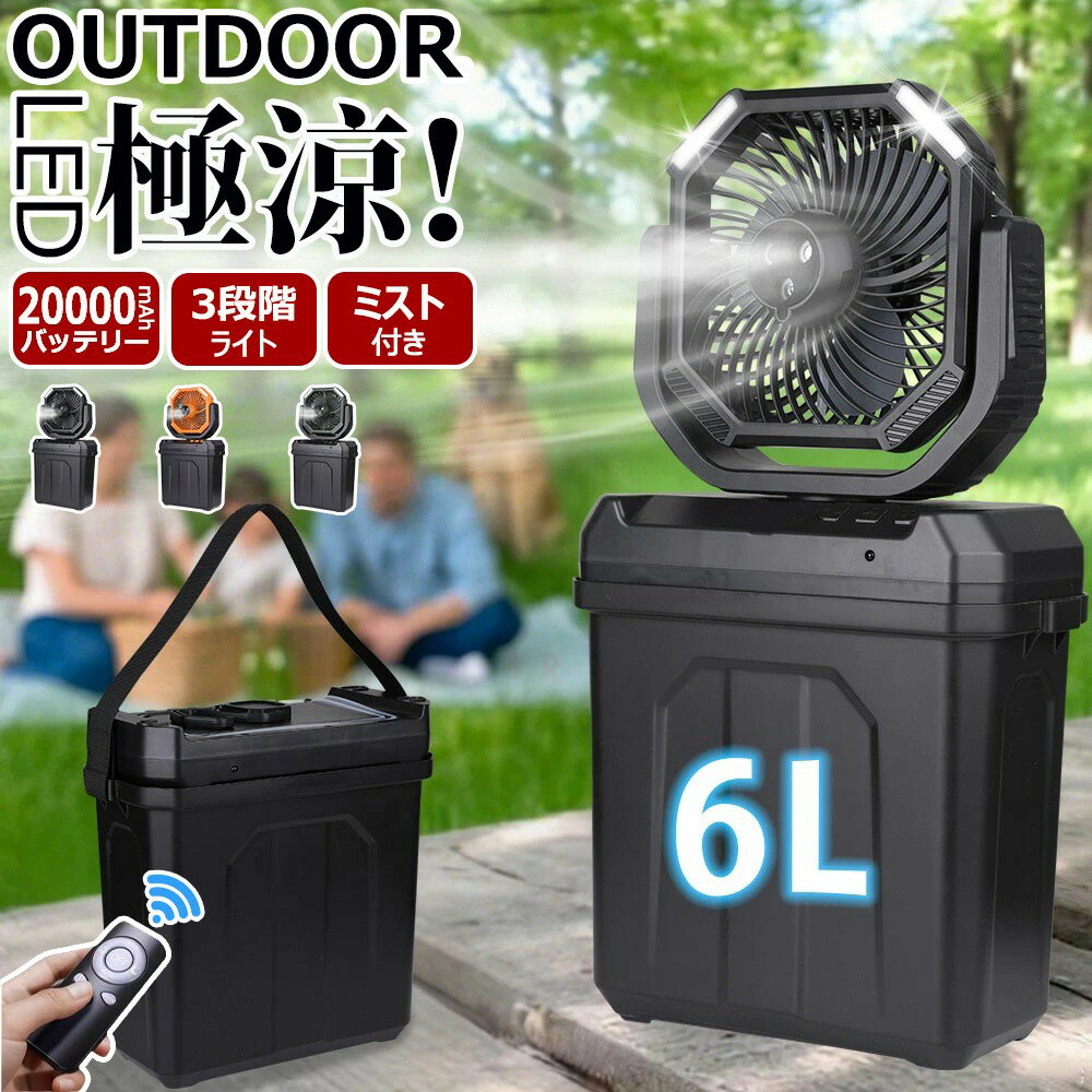 【業界大好評★1年保証】キャンプ扇風機 20000mAh 6L大容量 コードレス アウトドア扇風機 強力 ミストファン キャンプ 扇風機 吊り下げ 静音 2026 4段階風量 キャンプ扇風機 冷風機 キャンプ 扇風機 ミストファン 加湿 リモコン付き 小型水冷 DCモーター 左右首振り
