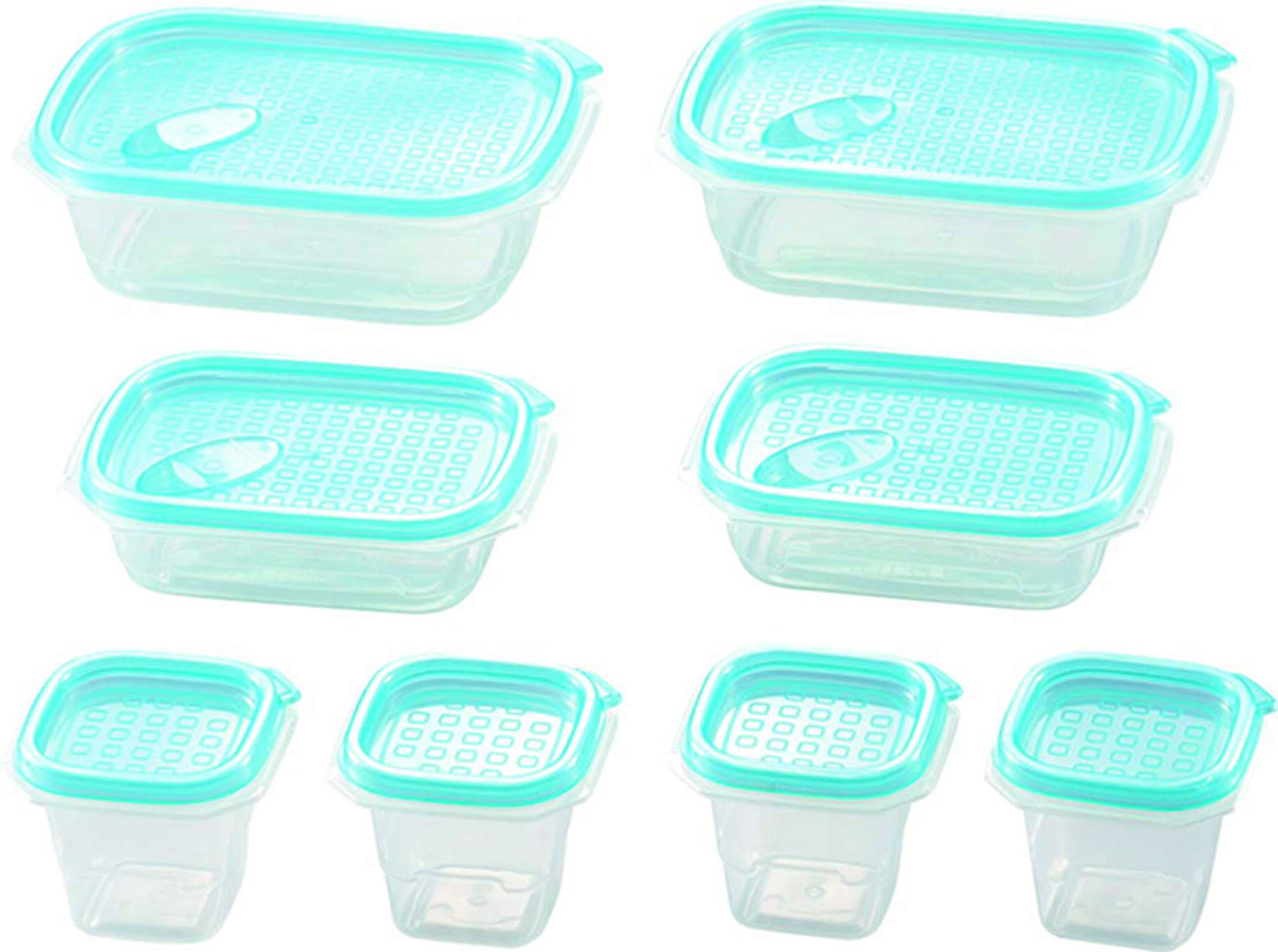【まとめ買い送料無料】 コンテナ 保存 冷蔵庫収納 クリアブルーコンテナ 8pcs ワンタッチ レンジ加熱OK