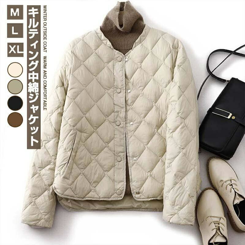 キルティングコート レディース 中綿ジャケット 中綿コート 中綿ダウン ダウン キルティングジャケット ショット丈 長袖 ポケット 襟づき 暖かい 防寒 春 秋 冬 羽織り防寒 あったか 体型カバー ゆったり 着痩せ 軽い 20代 30代 40代 50代 60代