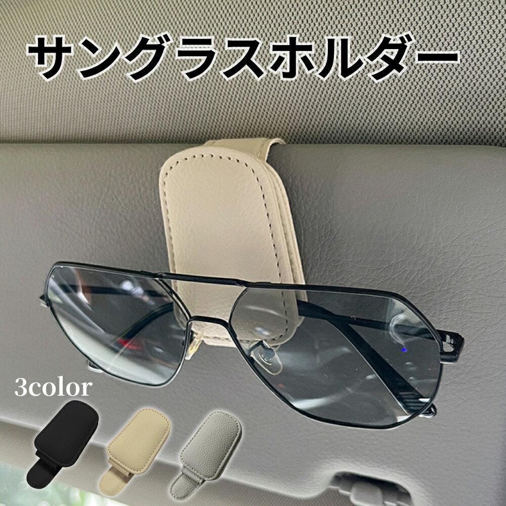 サングラスホルダー レザー 革 車 サングラスクリップ カードホルダー メガネホルダー サングラス ホルダ メガネクリップ マグネット 収納 サンバイザー クリップ レザー