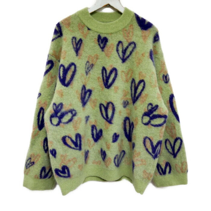 LANVIN×PRONOUNCE ランバン プロナウンス 国内正規 23SS ハート柄モヘアニット セーター オーバーサイズ RM-POCN01-LETL-P23 定価116800円 GREEN DARK PURPLE グリーン パープル 緑 紫 M【中古】