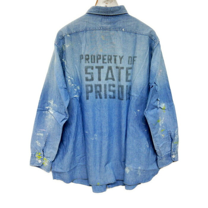 BOWWOW バウワウ 国内正規 25SS STATE PRISON CHAMBRAY SHIRT シャンブレーシャツ ステンシル ビンテージ加工 BW251-SPCS 定価36300円 INDIGO AGING インディゴ ブルー 青 M【中古】