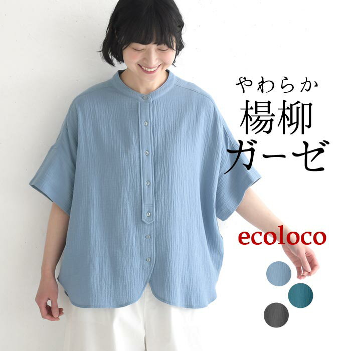 綿100% ブラウス レディース 長袖 スキッパー シャツ/ 着後レビューでクーポン☆ カジュアル ナチュラル シンプル ワイド 体型カバー ゆったり 羽織り トップス おしゃれ 大人可愛い 無地 エコロコ e+,/ 春 夏 秋 26SS0227R,
