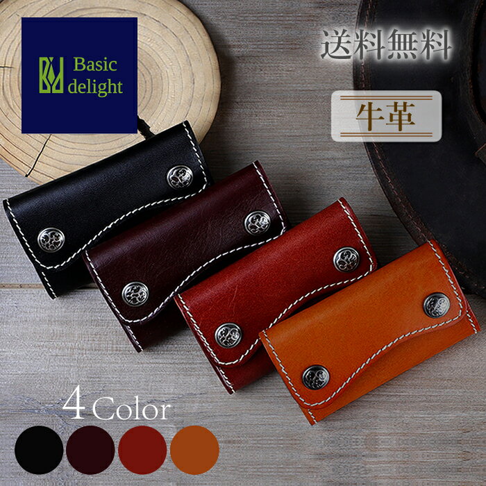 【送料無料】 キーケース 鍵入れ キーホルダー 鍵 ケース ホルダー ライダース バイカーズ 牛革 本革 レザー スナップボタン ワイルド プレゼント 贈り物 黒 ブラック 赤 レッド キャメル ライトブラウン こげ茶 ダークブラウン 革小物 レザー小物
