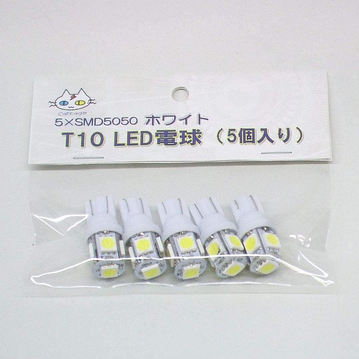 T10 LED 電球【5個入り】5×SMD5050 (ホワイト)(CTG-003)