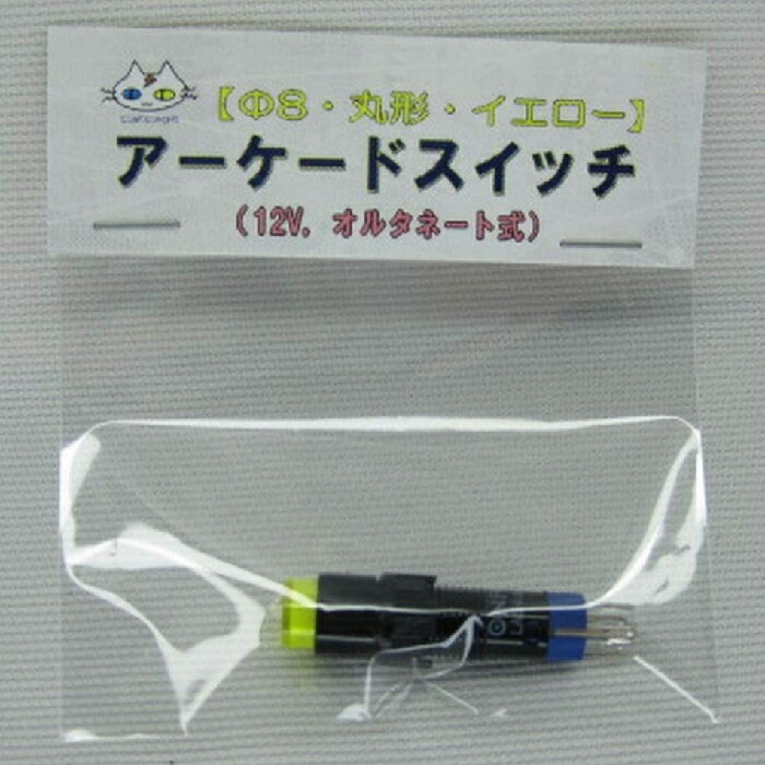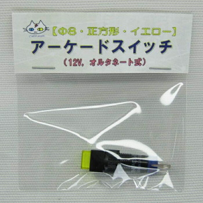 アーケードスイッチ 【 Φ8 正方形 イエロー】 LED ボタン 光るスイッチ 12V オルタネート動作(CTG-028)