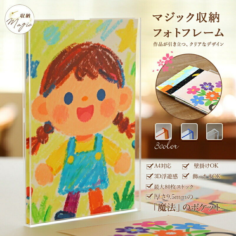 写真収納 飾る収納 アクリル フォトフレーム アクリルフォトフレーム 壁掛け A4 アート フレーム a4 額縁 写真フレーム 収納ケース 収納ボックス 収納フォトフレーム ファイル 収納ファイル 保管 作品保管 子ども 画用紙 絵 保存 写真立て