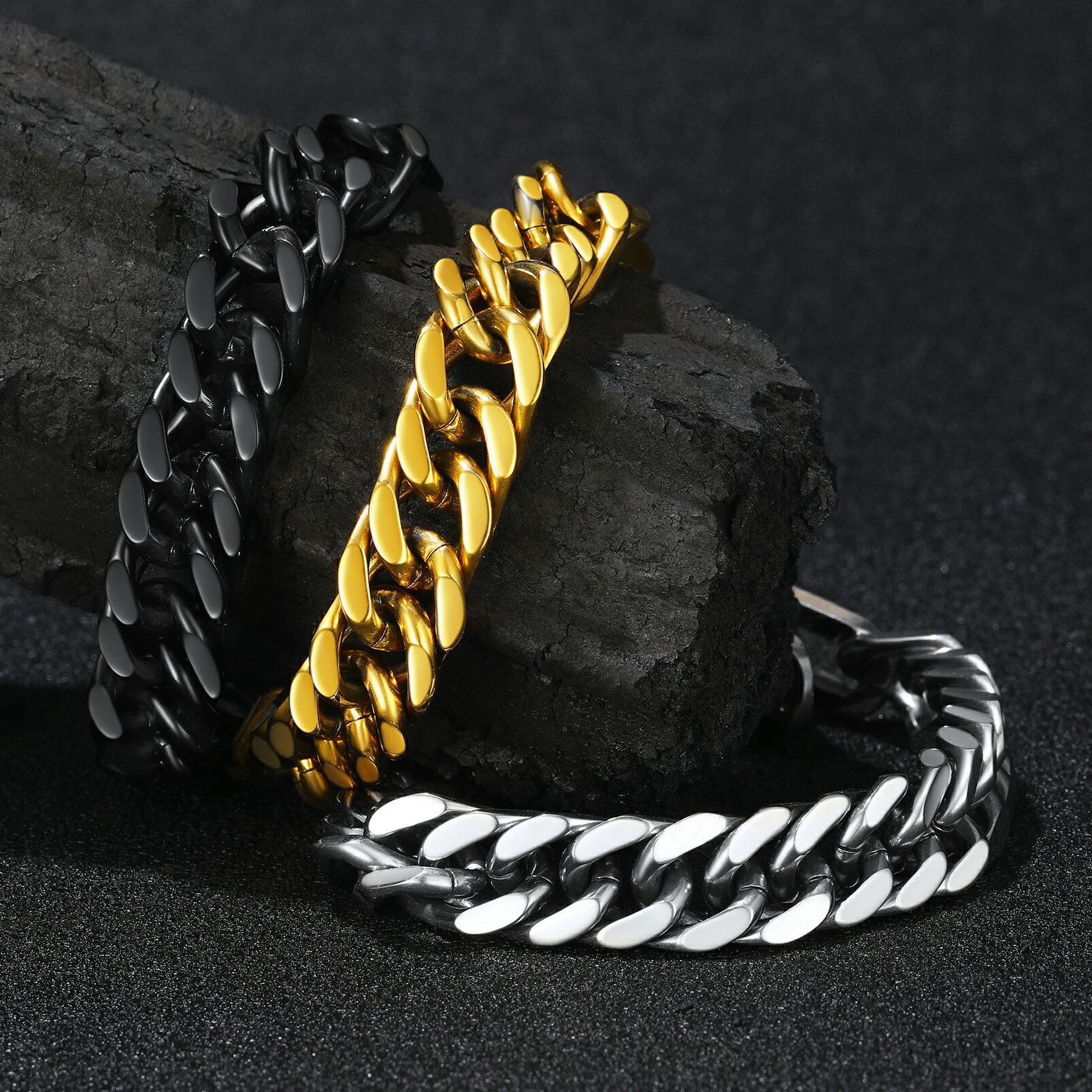 ブレスレット メンズ ステンレス 喜平ブレスレット 金属アレルギー対応 シルバー ゴールド ブラック 19cm 21cm 23cm 幅8mm 12mm 17mm シンプル 中折れ式 錆びない シンプル アクセサリー ジュエリー