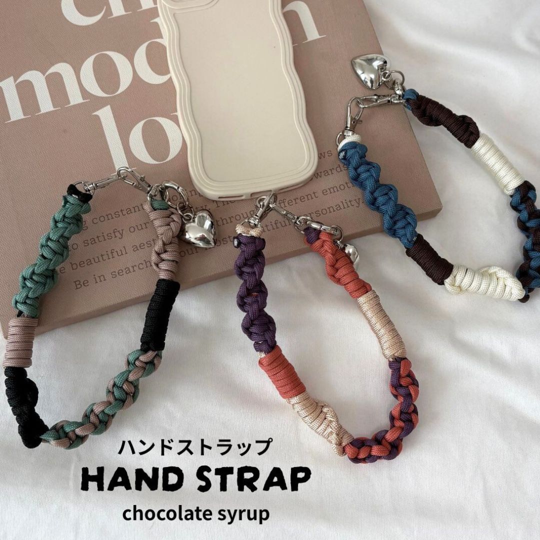 メール便 限定 送料無料 ★ ハート チャーム 付き ハンドストラップ くすみカラー ★ スマホストラップ おしゃれ 可愛い ニュアンスカラー パラコード ストラップ スマートフォン チョコレートシロップ
