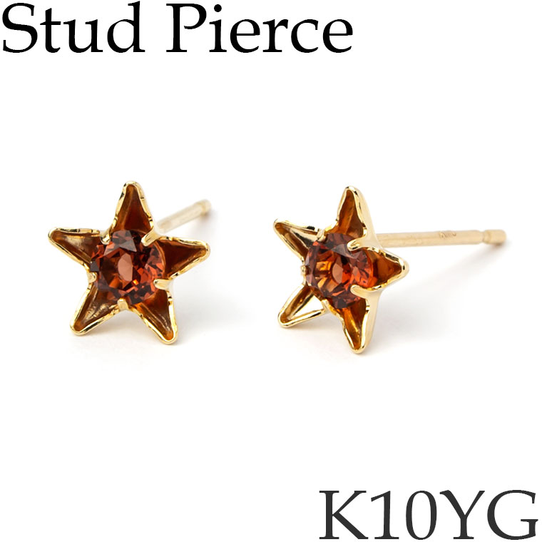 ピアス スタッドピアス 10Kイエローゴールド スター 星型 ガーネット 小ぶり K10YG 10KYG 10金 日本製 送料無料 [ma]