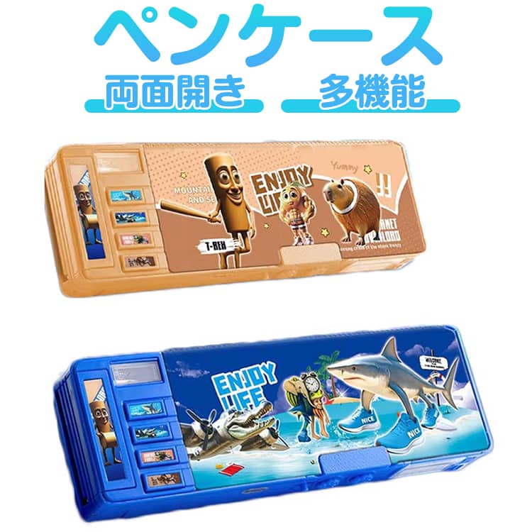 イタリアンブレインロット トゥントゥントゥンサーフール 両面開き ペンケース ペン箱 筆箱 鉛筆削り付き ロック付き 時間割表 ペンホルダー 文房具 子供 キッズ 男の子 女の子 小学生 多機能 大容量 プレゼント 新年 誕生日 送料無料