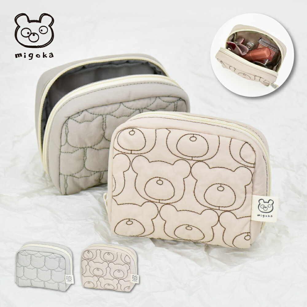 【クーポン利用で10%OFF】メール便送料無料 キルト 化粧ポーチ メイクポーチ ガジェットポーチ 小さめ メイク収納 小物入れ メイク収納 ケース バッグインバッグ 猫 くま クマ レディース 女子 旅行グッズ お出かけ 通勤 通学 大人 学生 子供 韓国 可愛い ブランド migoka