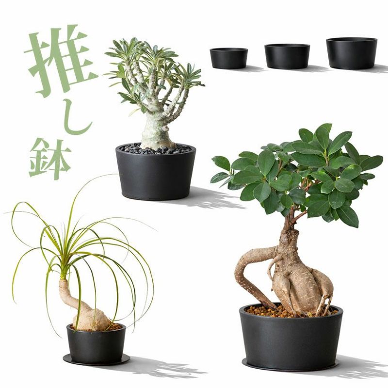 黒のベースポット(ひらべったい):植物の色、質感が1番映えるマットブラック浅鉢樹脂 楕円 丸 黒マット ブラック 手軽 安い お手頃 おしゃれ 室内 使いやすい 観葉植物 植え替え 鉢カバー