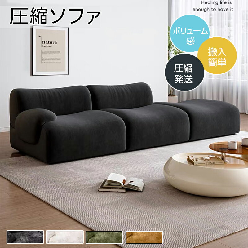 圧縮収納可能】ソファ 圧縮ソファ 圧縮式 深座面70cm 低座面30cm フットレスト付き スノーフロック 高密度スポンジ コンパクト収納 軽量 コンパクト収納 3人掛け スノーフロック 北欧風 モダン おしゃれ ソファ 3人掛け リビング インテリア
