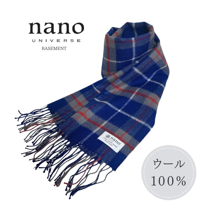 【あったか ウール100%】NANO universe BASEMENT ウール100% チェックマフラー ウールマフラー 男女兼用 おしゃれマフラー