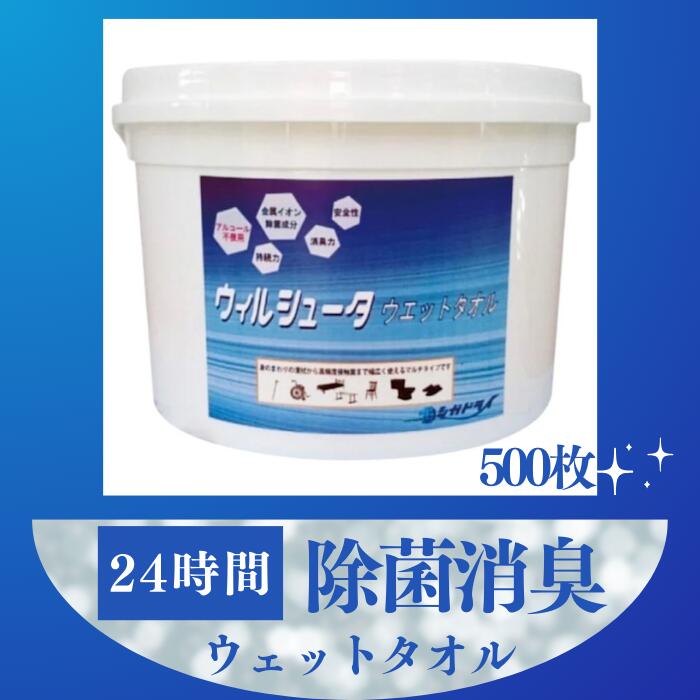 【防災・非常用・衛生・病院で活躍中】大容量 ウィルシュータ ウエットタオル 500枚 薬剤不使用 特許技術採用 消臭 染みない おしりふき 除菌 防災グッズ ウェットシート 介護 子供用 病院用品 床ずれ ペット用 シガドライ ノンアルコール 化学物質無添加