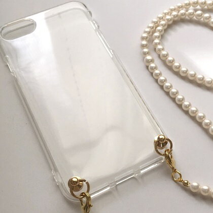 スマホストラップ ネックストラップ 6色 カラー パール 8mm玉 日本製 首掛け ストラップ 携帯ストラップ 落下防止 スマホケース おしゃれ
