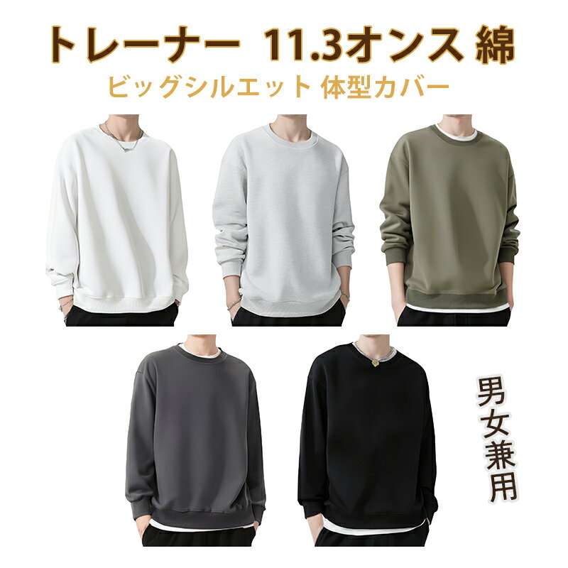 トレーナー メンズ 長袖 11.3オンス 綿 トップス レディース 春秋冬 丸襟 ロングtシャツ ビッグシルエット 体型カバー プルオーバー 無地 カジュアル パーカー ゆったり 着痩せ スウェット クルーネック 男女兼用 スポーツウェア