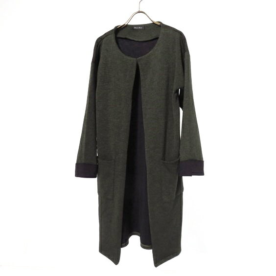 【美品】Jeunne garcon ジュンヌ ギャルソン ノーカラー ロング コート サイズ M 緑 グリーン レディース アウター