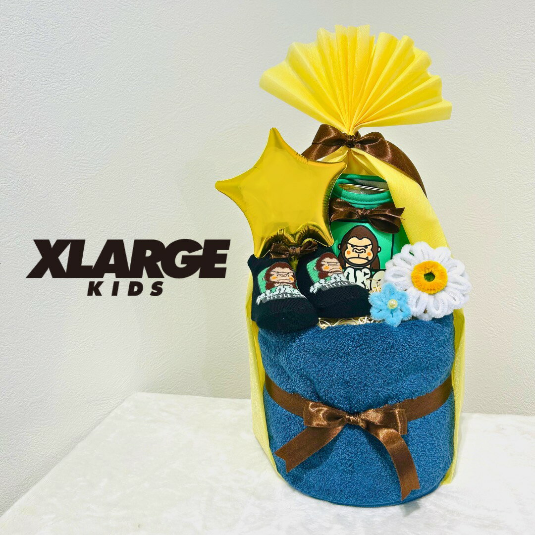 おむつケーキ 男の子 出産祝い X-LARGE XLARGEKIDS エクストララージキッズ スタイ ベビー靴下 今治タオル 2段 ゴリラ ベビー ギフト