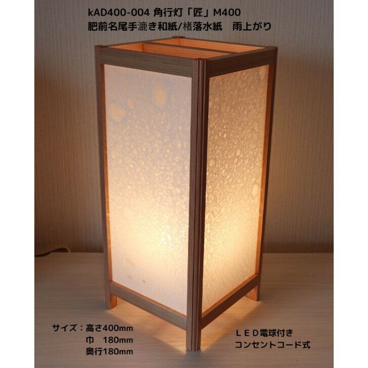 KAD400-014 角行灯「匠」 M400 高さ40cm 肥前名尾和紙/楮落水紙 雨上がり/角麻組子/LED電球付きホテル・和風旅館・飲食店・リラクゼーション施設などにお薦め!伝統技術と耐久性を組み合わせた作品です。