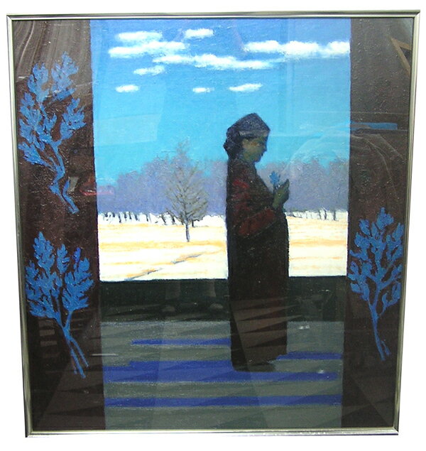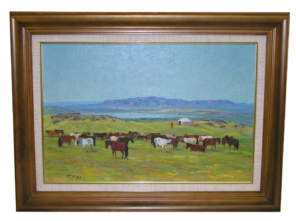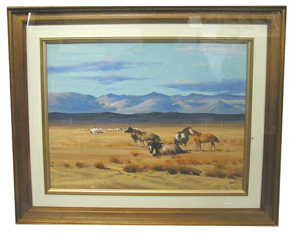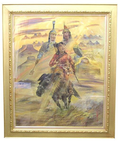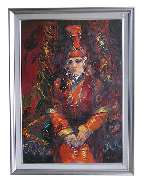 【モンゴル民芸品 絵画】ブーケを持った花嫁