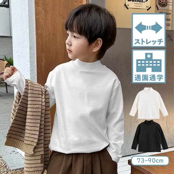 Tシャツ カットソー 子供 キッズ ベビー服 長袖 トップス インナーシャツ ロンT シャツ肌着 ハイネック 裏軽ボア 暖かい 子供服 キッズ服 ベビー 赤ちゃん 新生児 女の子 男の子 柔らかい 無地 白 黒 通園 通学 秋服 冬物 春服 73cm 80cm 90cm