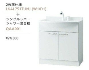 アサヒ衛陶 標準仕様 アルバシリーズ 洗面台のみの販売 間口 75センチ 洗面化粧台 LKAL751TUNJ 選べる扉カラー2色