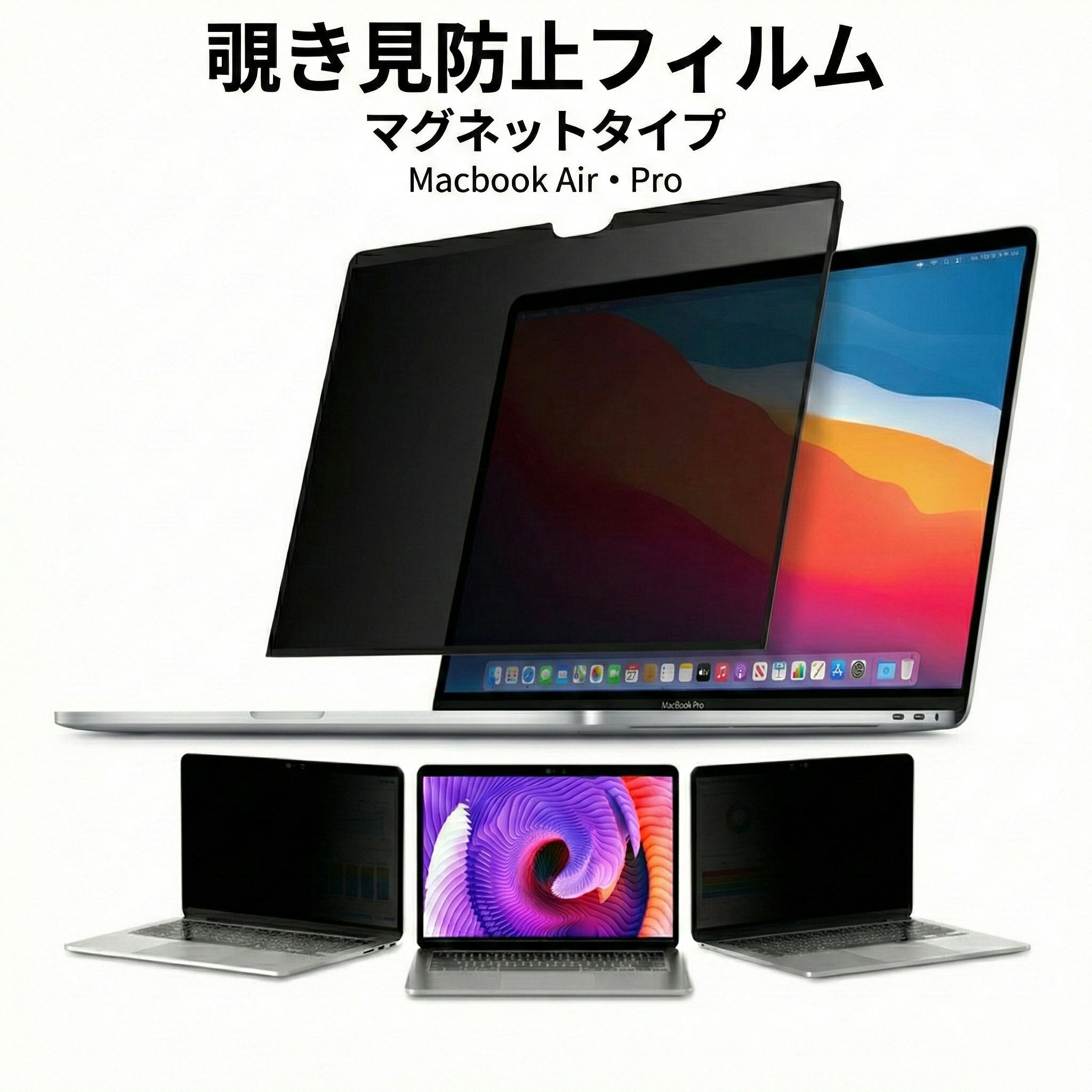 覗き見防止 macbook air 13 m1 m2 m3 m4 / macbook pro 13 / macbook air 15 / macbook pro 16 / macbook pro 14 プライバシーフィルター ブルーライトカット mac 画面 フィルム 保護フィルム フィルター マグネット のぞき見 防止 13.6 2020 2025