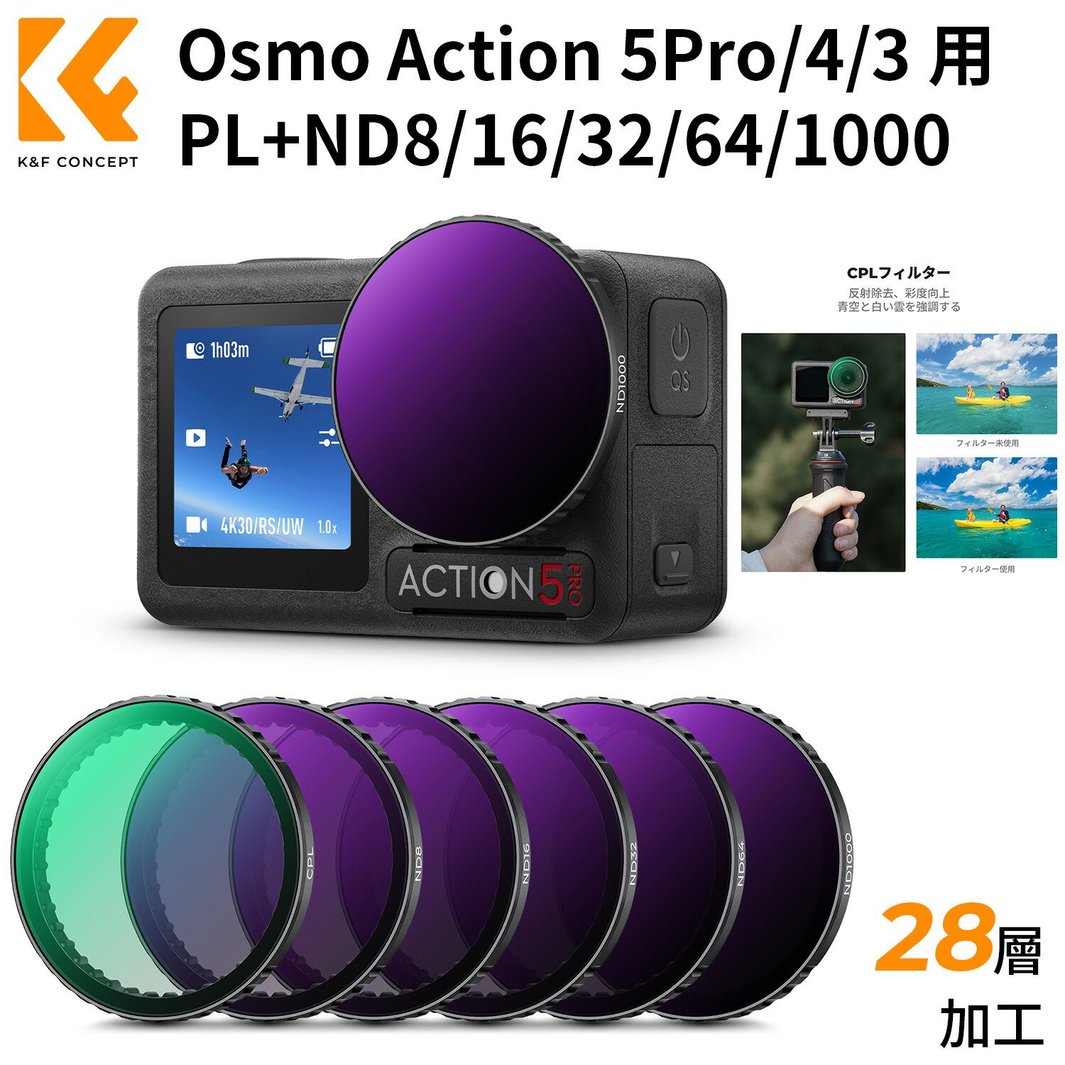 P5倍+最大10%OFF!! Osmo Action 5Pro/4/3 用フィルターセット(PL+ND8+ND16+ND32+ND64+ND1000) 【元レンズに直接はめ込むだけで取付可能】NDフィルター 減光フィルター CPLフィルター 偏光フィルター レンズ保護