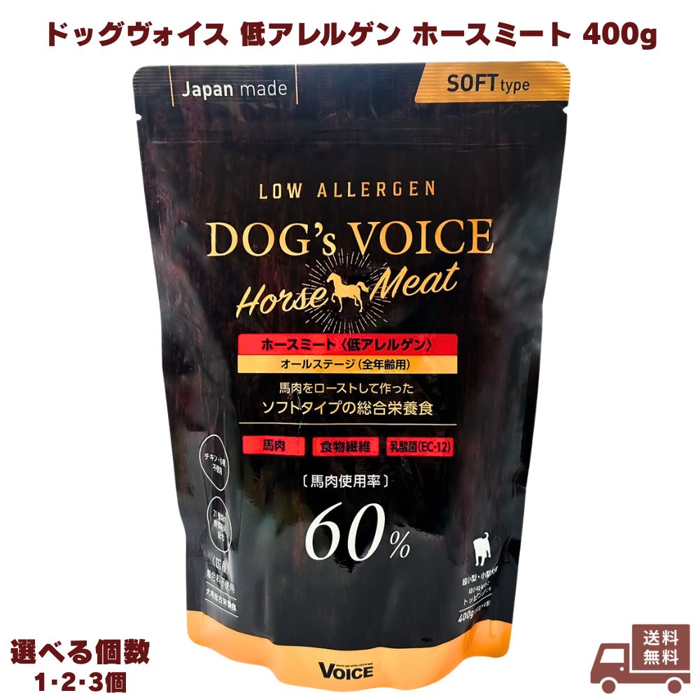 ドッグヴォイス 低アレルゲン ホースミート 400g Dogs Voice 全年齢用 ドッグフード 餌 エサ 犬 子犬 仔犬 成犬 高齢犬 シニア 総合栄養食 超小粒 ソフトタイプ セミモイスト 馬肉 チキン不使用 小麦不使用 高タンパク 食物繊維 健康維持 消化吸収 イミダゾールジペプチド