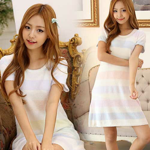 ふわもこボーダーワンピ キッズ ルームウェア 女の子 パジャマ ワンピース もこもこ 長袖 あったか 秋冬 子供部屋着 ナイトウェア ボーダー 可愛い おしゃれ お泊まり 3カラー 3サイズ(S/M/L)(AKSYC09)