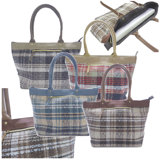ボア調の生地が寒い季節にピッタリ!!チェック柄のデザインも可愛いA4サイズも収納出来て重さも軽くて使いやすいしっかり収納チェック柄トートバッグ ハンドバッグ