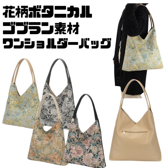 ゴブラン ジャガード フラワー 花柄 ボタニカル フローラルワンショルダーバッグ トートバッグ高見え 豪華 ゴージャス プチプラ普段使い 通勤 通学 軽量 A4サイズ収納ゴブラン織り 花柄 ワンショルダーバッグ BAG 45624