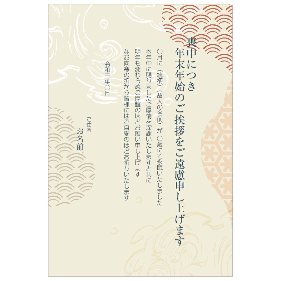 【あなたのあいさつ文を入れて1枚から印刷OK】喪中はがき オリジナル 喪中葉書 欠礼はがき 年賀欠礼 ハガキ 欠礼挨拶 挨拶状 おすすめ 差出人印刷有
