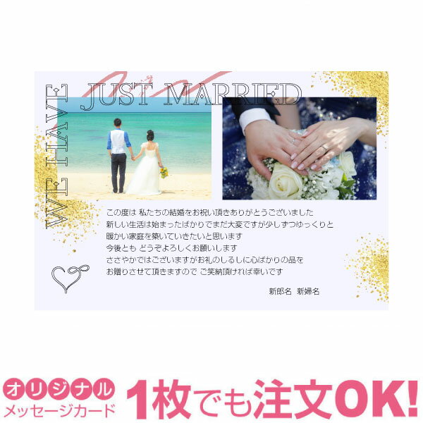 【あなたの写真とあいさつ文を入れて1枚から印刷OK】 写真入り オリジナル メッセージカード 結婚報告 結婚内祝い 出産内祝い 快気内祝い お祝い お返し おしゃれな 挨拶状 結婚式 招待状 ポストカード はがき ハガキ 葉書 グリーティングカード