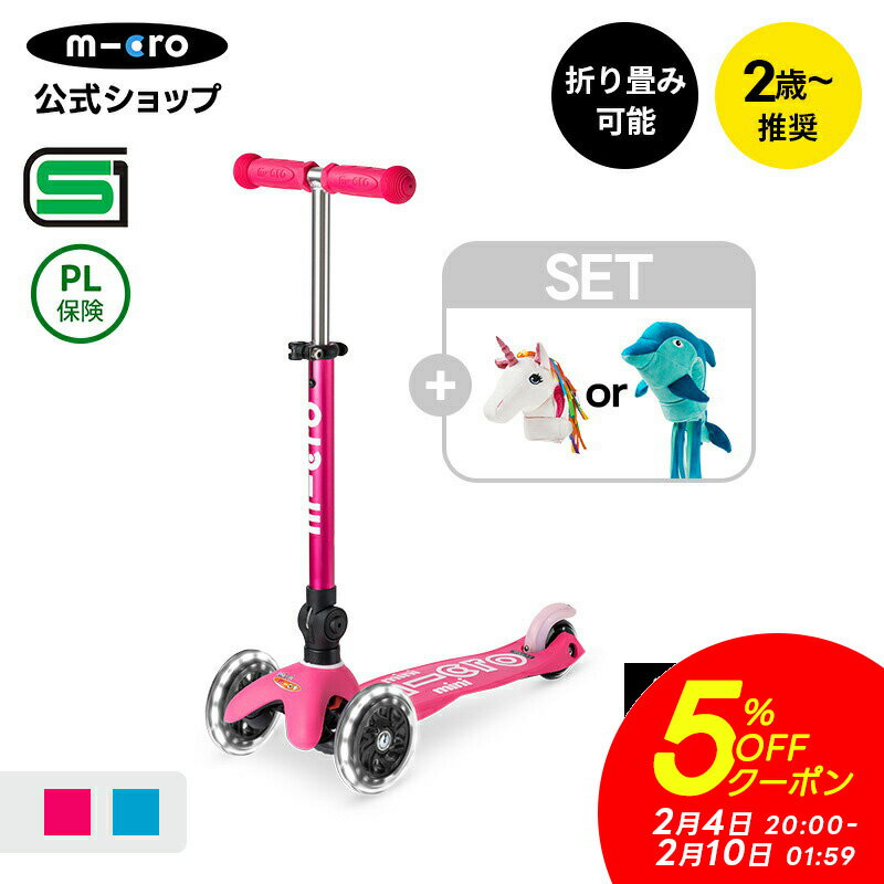 【5%OFFクーポン!2月4日20時~2月10日1時59分】【レビュープレゼント有り】キックボード 子供 [SET]ミニマイクロ 折りたたみデラックスLED+スクーターヘッド 2歳 3歳 4歳 軽量 子供用 SGマーク ブレーキ付 ワンタッチ 光る タイヤ キックスクーター キックスケーター 3輪