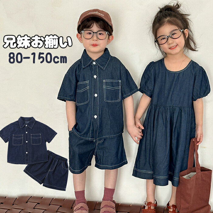 子供服 セットアップ キッズ 男の子 女の子 ワンピース デニムセットアップ 半袖 シャツ ショートパンツ 上下セット 小学校 幼稚園 兄妹服 双子 姉妹 姉弟 兄弟 ベビー服 子供服 セットアップ 普段着 保育園 通学着 おしゃれ カジュアル 80/90/100/110/120/130/140/150cm