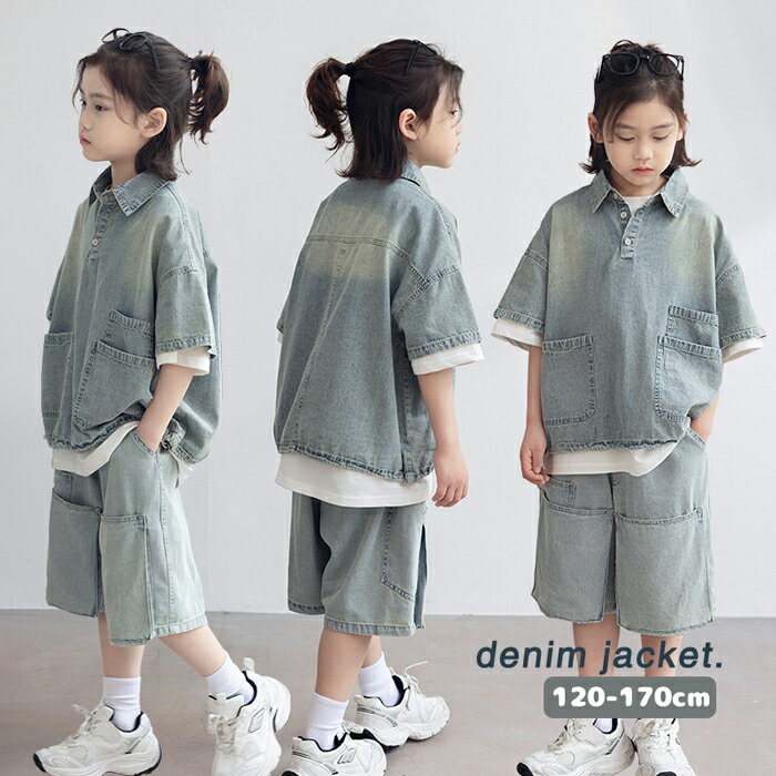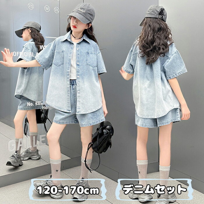 子供服 セットアップ キッズ 女の子 夏 半袖 デニムセットアップ デニムシャツ 短パンツ 薄手 ジュニア服 ジーンズ 上下セット ジャージ 女の子 韓国 子ども服 運動着 通学着 修学旅行 小学生 中学生 おしゃれ 120/120/130/140/150/160/170cm