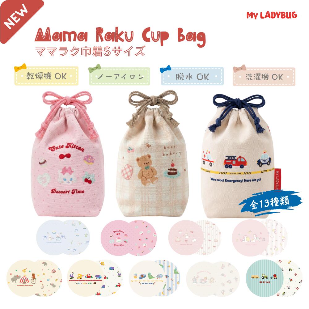 『ママラクコップ巾着』厚手帆布Sサイズ 巾着 キャンバス巾着袋 コップ入れ MY LADYBUG コップ袋 ネームタグ 入園 入学 入園準備 入学準備 子供 男の子 女の子 キャンバス