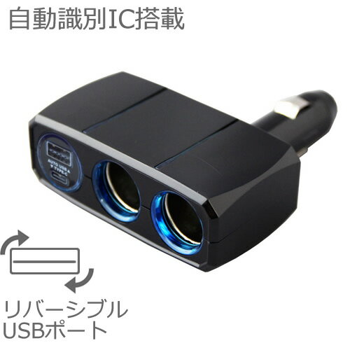 USB PD最大20W出力×2ポート/リバーシブルUSB-A×1ポート搭載 DC充電器(DC060)