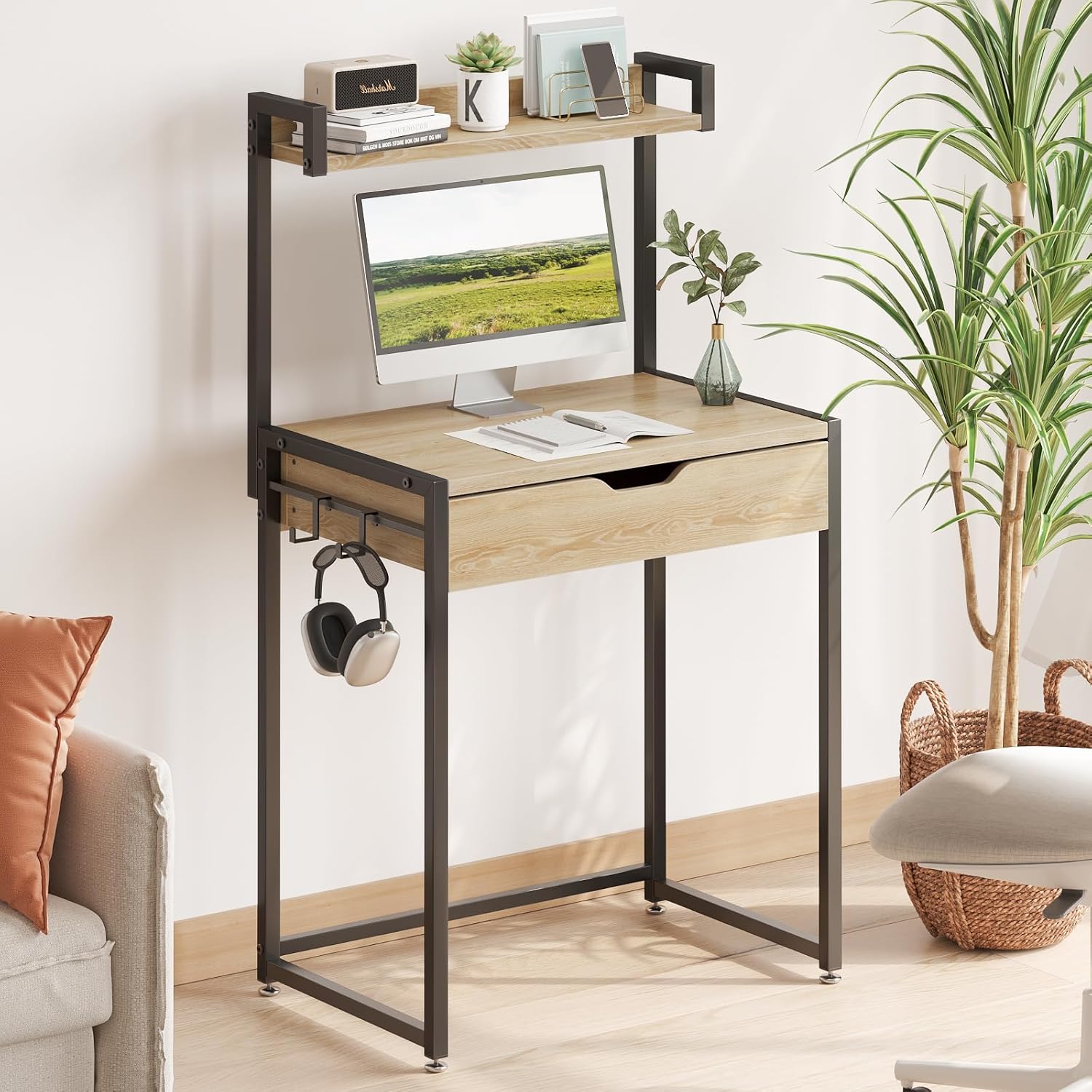 \送料無料/Bestier l字デスク パソコンデスク 幅107cm コンセント付き USB-C対応 ゲーミングデスク LEDライト付き 机 pcデスク l字型 収納 ラック付き 壁面収納 勉強机 学習机 在宅勤務 小さめ オーク&ブラック