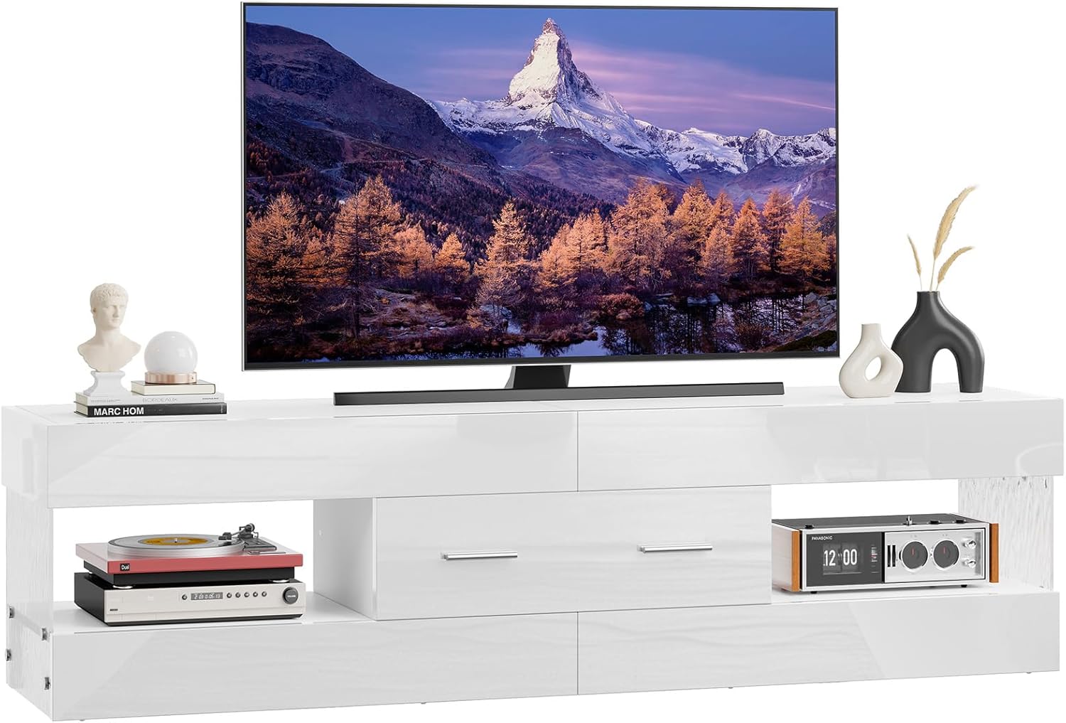 \送料無料!/Bestier テレビ台 幅152.4×奥行き35×高さ40cmテレビボード 32/40/43/50/55/65型対応のtv台 引き出し付きテレビラック 収納棚付きローボード おしゃれ 鏡面仕様 隠す収納スペース LEDライト付 AV機器収納対応 モダン (152.4x35x40, ホワイト&ブラック)