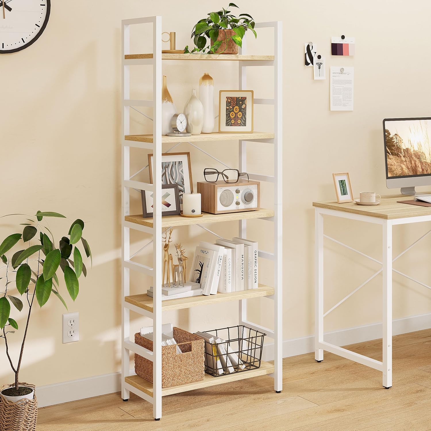 \送料無料!/Bestier ラック オープンシェルフ 4段&5段 幅60×奥行28×高さ122&155cm 本棚 スリム 収納ラック おしゃれ 隙間収納 オープンラック 木製 キッチン ディスプレラック 組立簡単 オーク