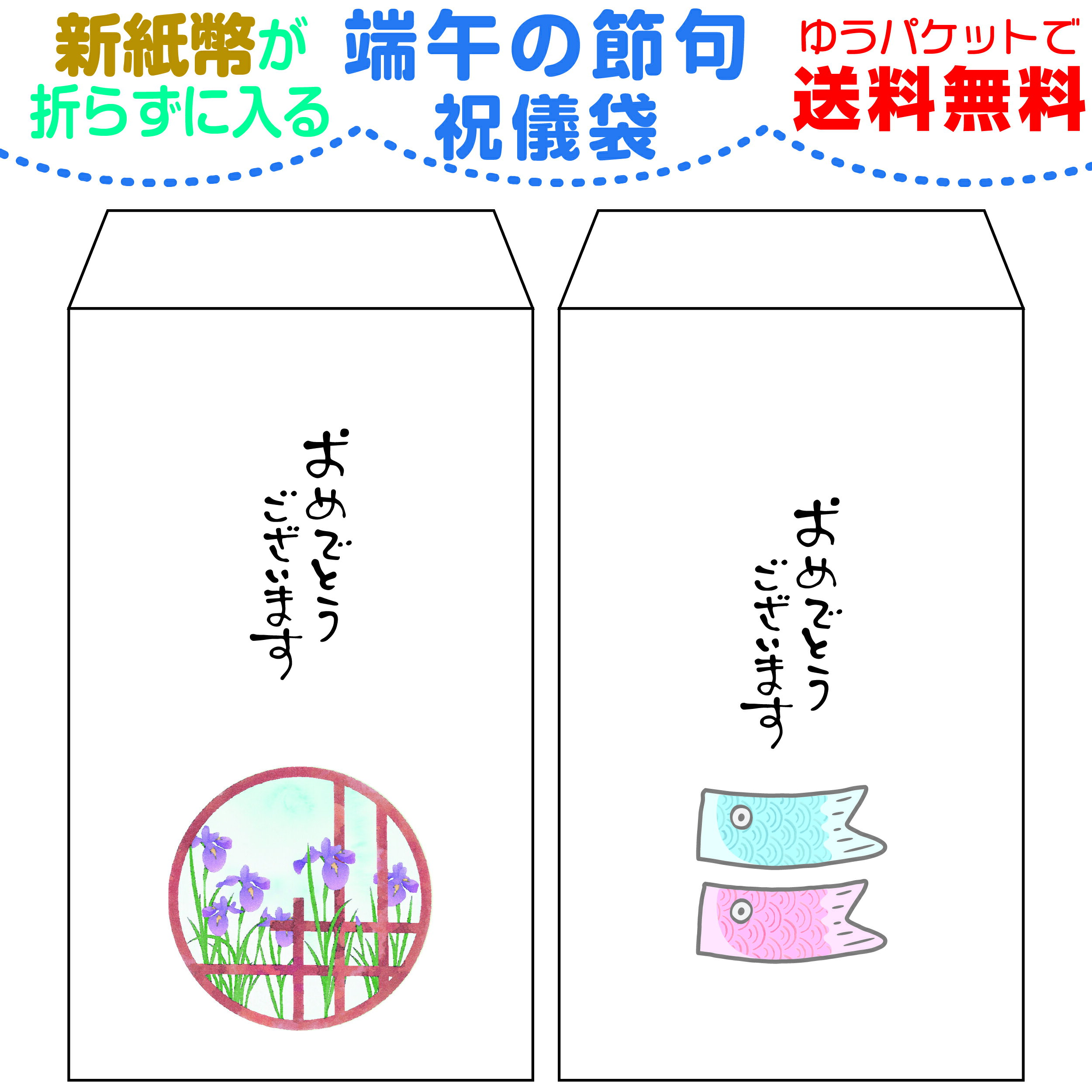 端午の節句用 新紙幣が折らずに入る ちょっと大きめ祝儀袋 1種類3枚セット 子供の日 こどもの日 鯉のぼり 鯉登 こいのぼり 花菖蒲 花しょうぶ ハナショウブ