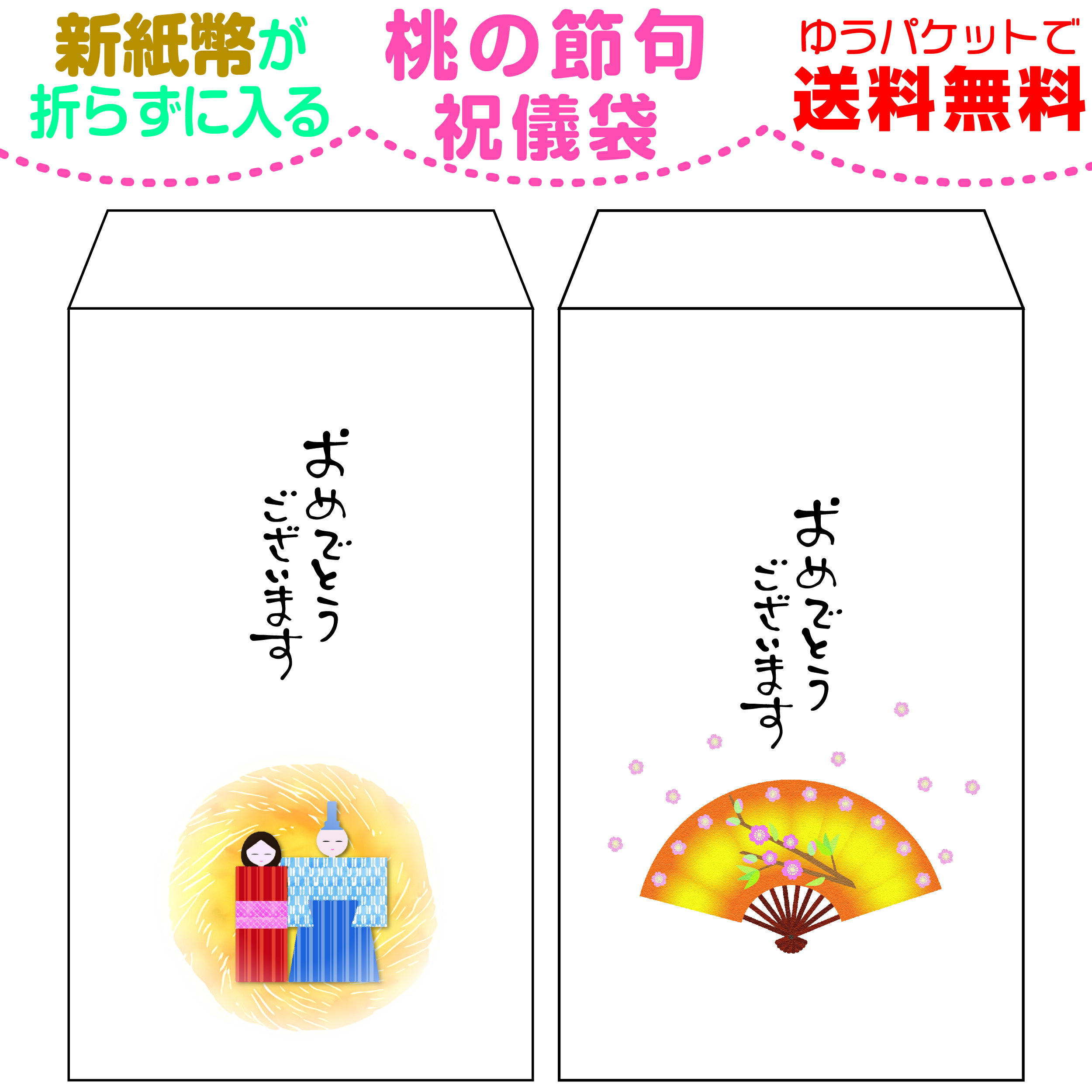 桃の節句用 新紙幣が折らずに入る ちょっと大きめ祝儀袋 1種類3枚セット 雛祭り ひな祭り ひなまつり