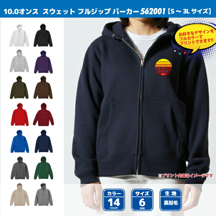 10.0オンス T/C スウェット フルジップ パーカー(裏起毛) 5620-01