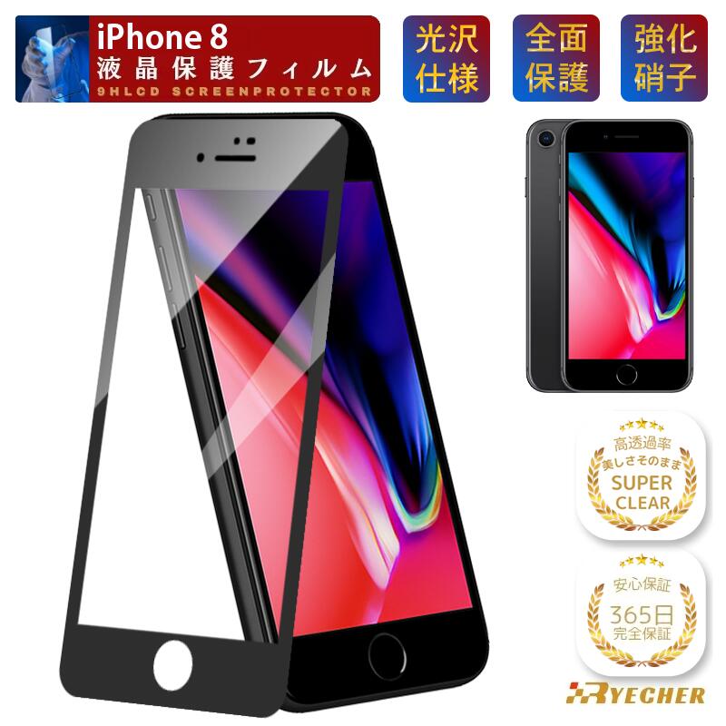 【高品質クリア光沢・全面保護】 iPhone8 ガラスフィルム iPhone 8 保護フィルム iPhone 8 フィルム アイフォン8 スマホフィルム 液晶保護フィルム RYECHER フィルム クリア 黒縁 光沢 簡単貼り付け