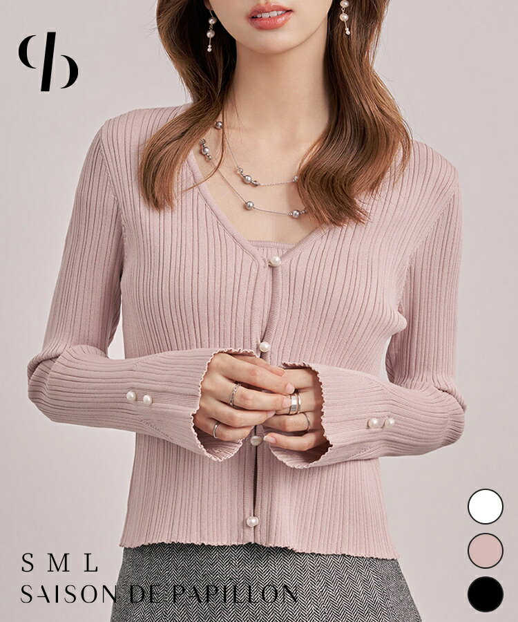 ニット トップス レディース プルオーバー カーディガン風 トップス ショート丈トップス ショート丈 リブニット レイヤード風 長袖 ハイゲージニット オフィスカジュアル パールドット 通勤服 20代 30代 40代SAISON DE PAPILLON sdp8065
