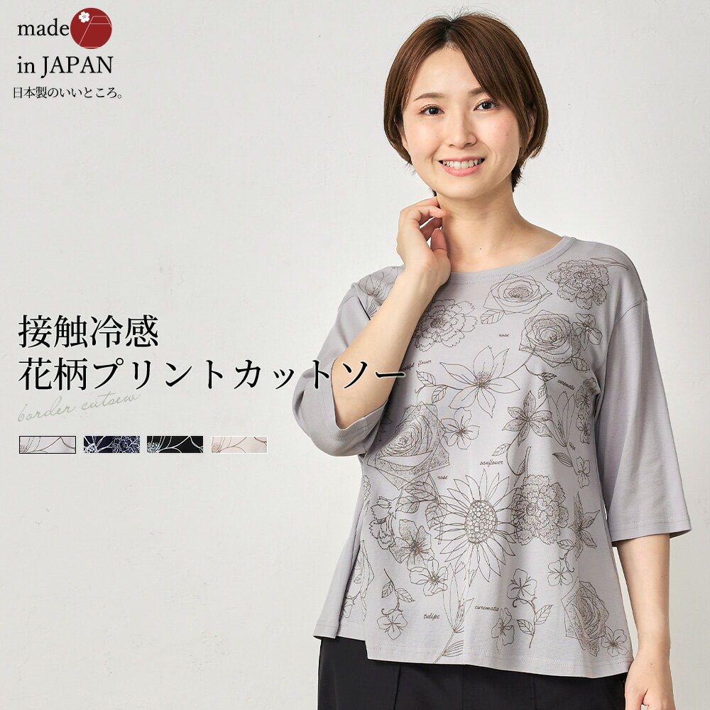 リバティ LIBERTY カットソー 日本製 花柄 フラワー 草花 ボタニカル プリント 綿100% コットン 綿 Tシャツ プルオーバー 長袖 ダーツ入り ファッション レディース お出かけ 春 トップス インナー レイヤード 重ね着 カジュアル